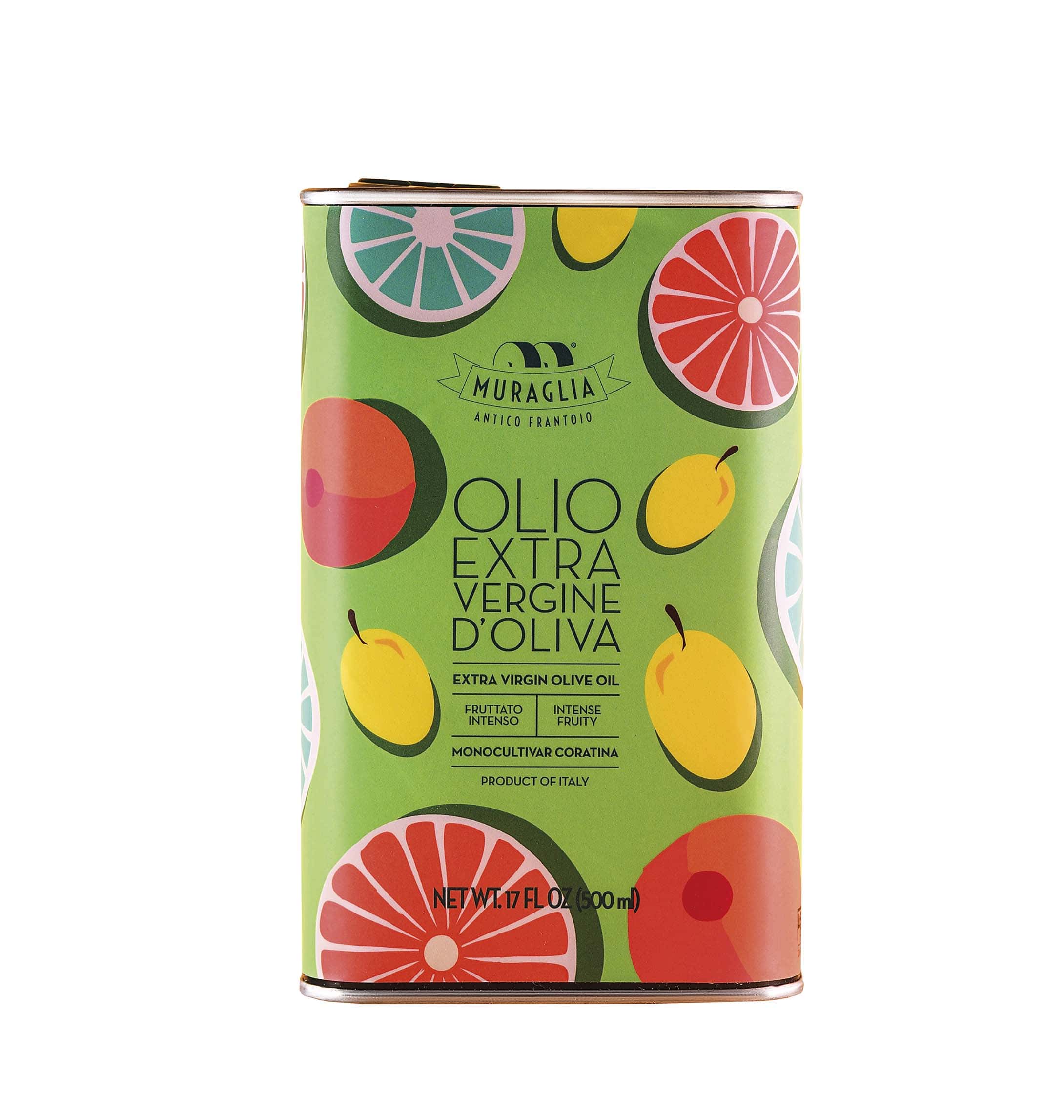 Also part of the same collection is a matte jug and a 500ml can - the sky blue one, keeper of Medium Fruity oil - which for the first time are adorned with the same colors, representing the union between artisanal tradition and the innovation of contemporary design that has always been at our core.